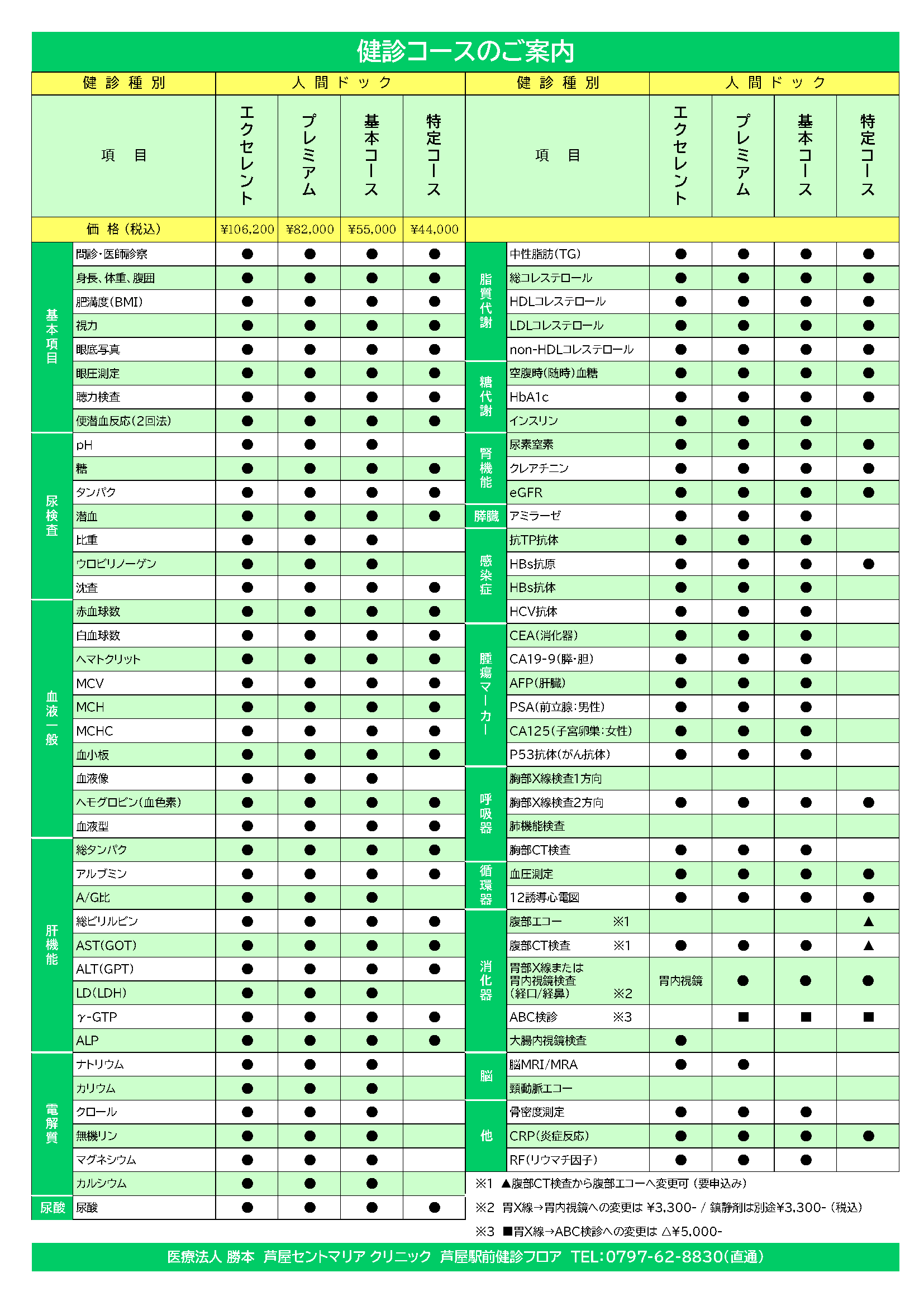 芦屋セントマリア クリニック 芦屋駅前健診フロア TEL:0797-62-8830(直通)