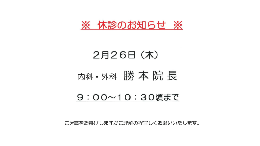 下記の日程において、院長(内科・外科)の診療時間が変更となります。